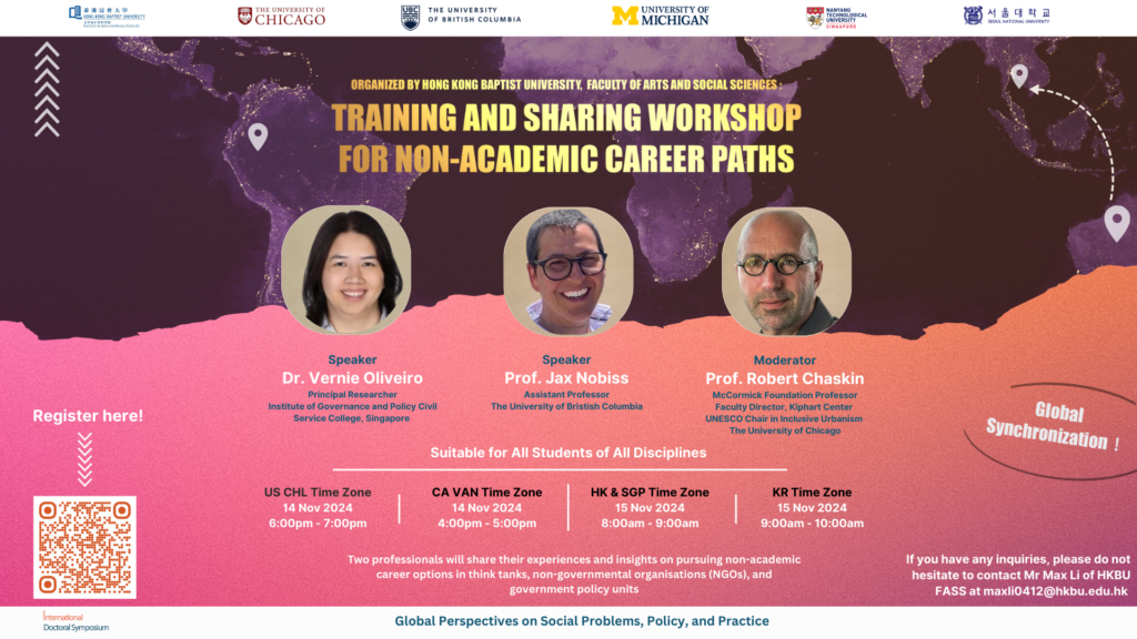 Thank you for your interest in attending the online career workshops organized by The University of Chicago, The University of Michigan, Seoul National University, The University of British Columbia, and Nanyang Technological University, in collaboration with Hong Kong Baptist University.